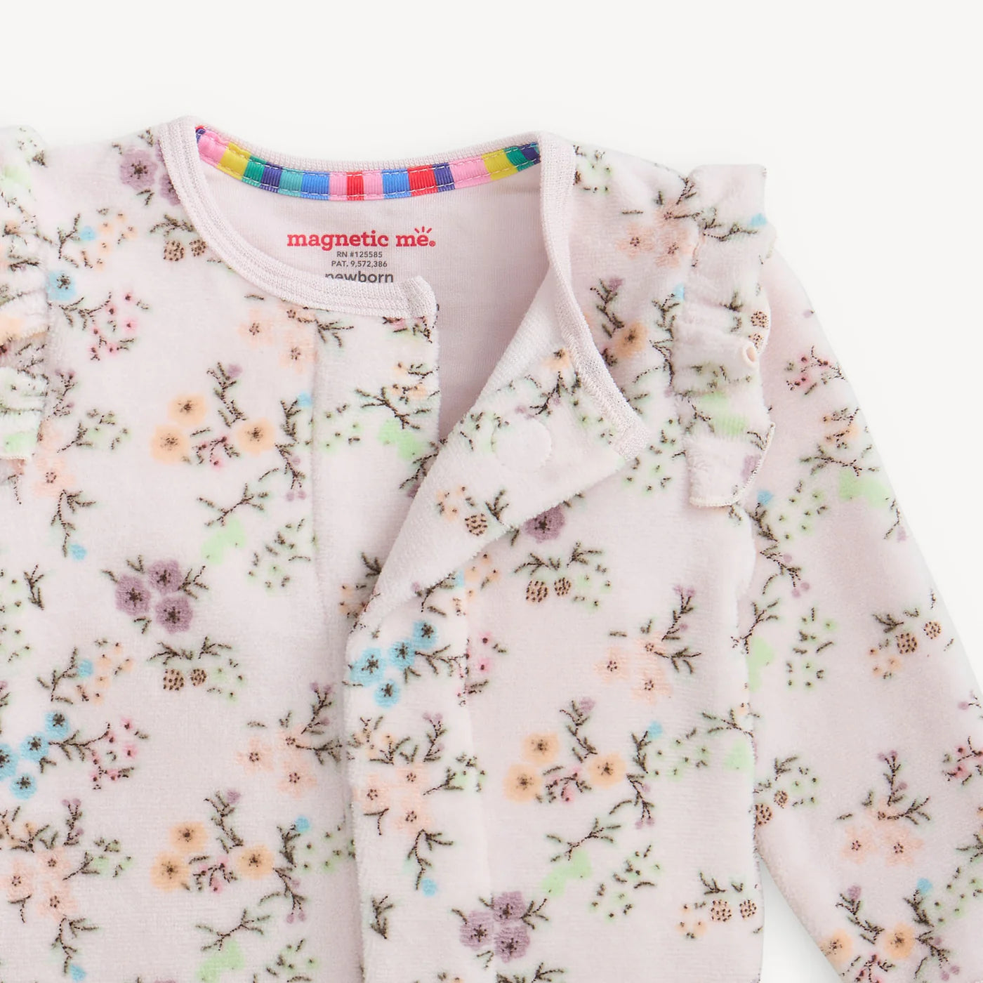 Our velour Footie, also known as a sleeper, gets baby warmed up and dressed quickly with magnetic closures down the front. It's the best outfit to wear when it gets chilly—soft, plush, and the perfect dose of cozy whether you’re at home or out and about.