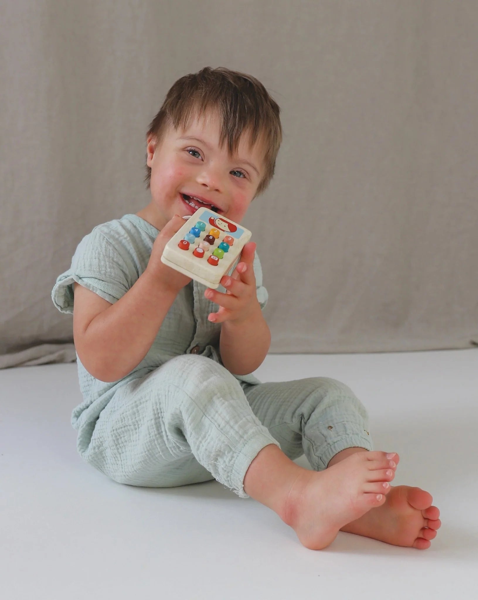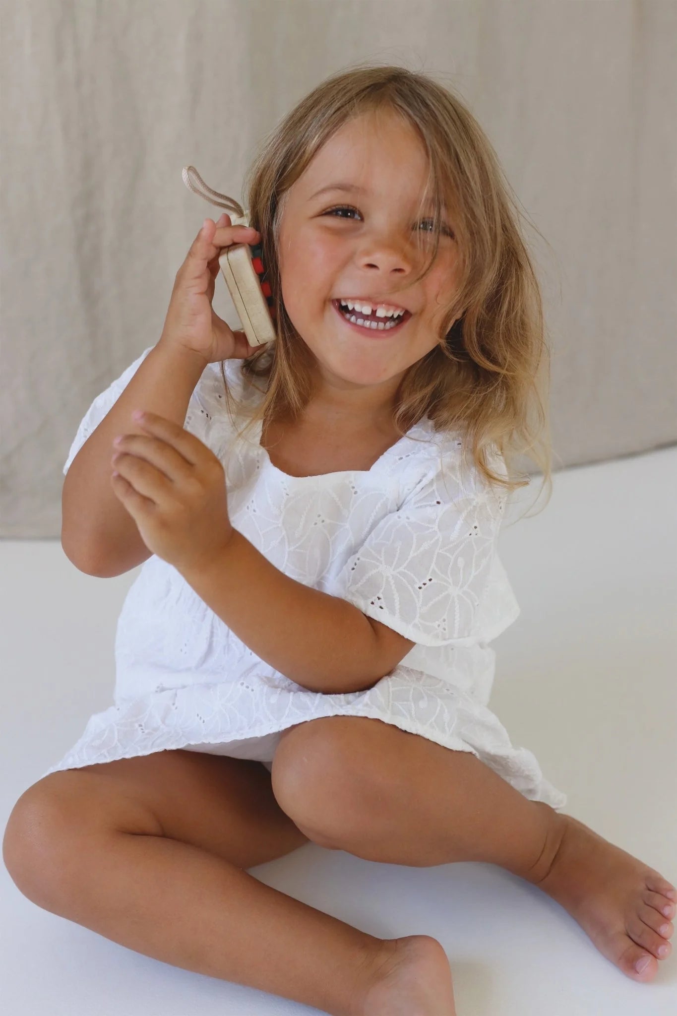 This pretend wooden mobile phone has 12 squishy colored buttons to press and an illustrated picture. It also comes with a cord handle.Age range: 2 years+Product size: 2.48 x 0.98 x 4.33’’