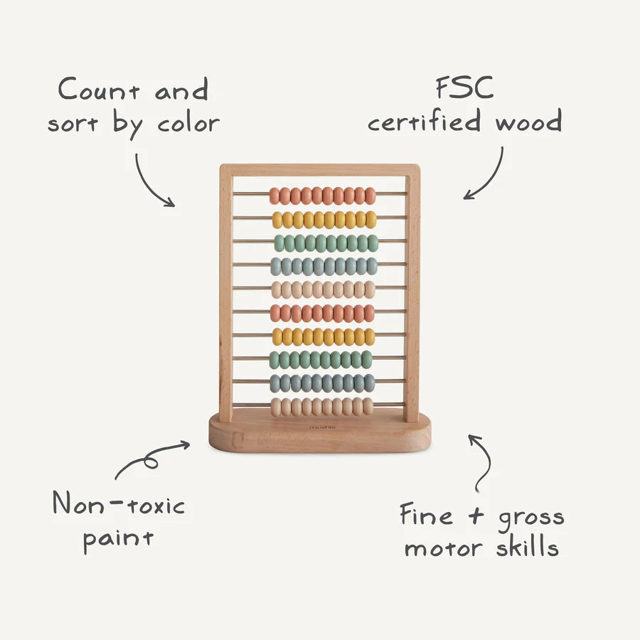 Introduce a timeless touch to playtime with this beautifully crafted wooden abacus, designed in a palette of muted colors that bring calm and to any nursery or playroom. Each smooth wooden bead glides effortlessly along sturdy rods, inviting little hands to explore counting, color sorting, and patterns in an engaging, hands-on way. Made from FSC certified wood and finished with child-safe, non-toxic paint, this abacus is as much a learning tool as it is a decorative piece. Perfect for toddlers and preschoolers, it combines style with functionality, encouraging thoughtful play and curiosity in a delightful way.