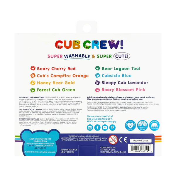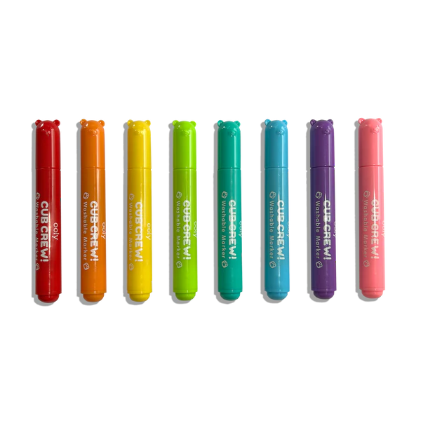 Let your creativity run wild with the Cub Crew Washable Markers! This set of 8 cute markers features bold, brilliant colors that make coloring and drawing a joy for artists of all ages. Designed for kids, teens, and even adults, these washable markers glide smoothly across the page, making them perfect for everything from doodles to detailed artwork.