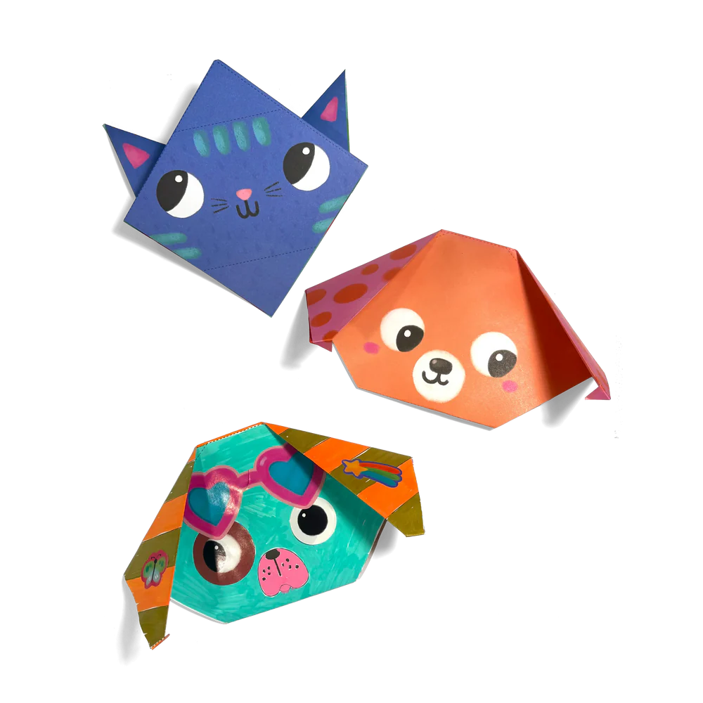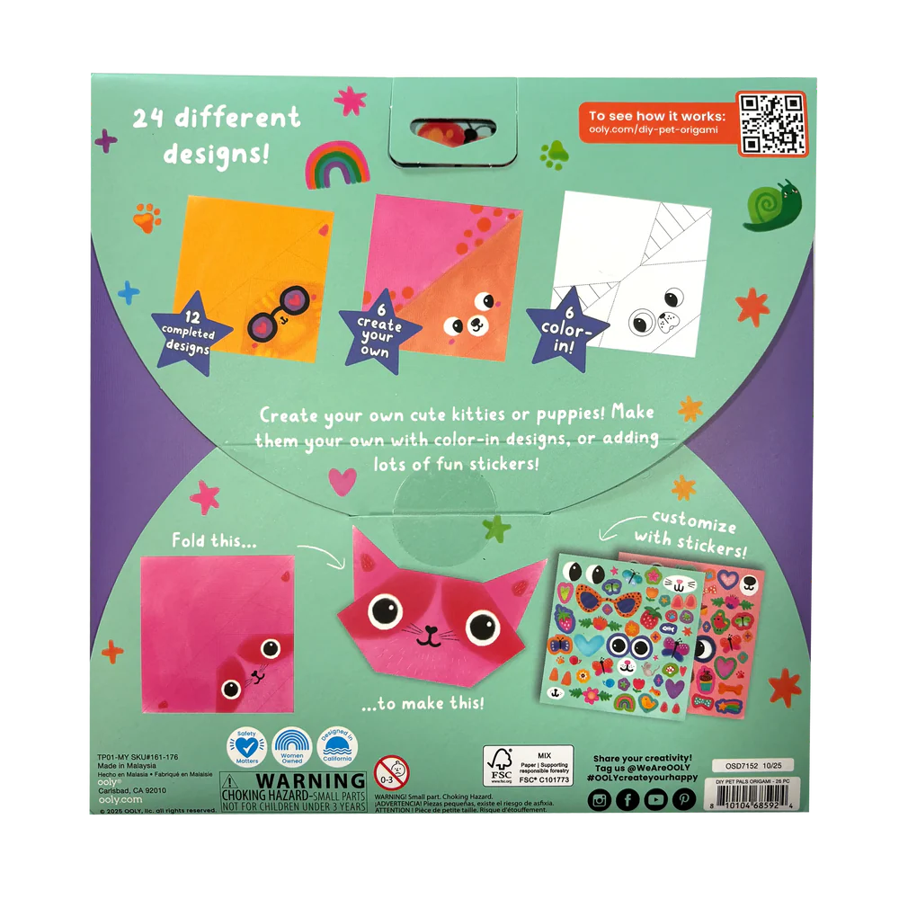 Fold, play, and decorate with the DIY Pet Pals Origami Kit—a beginner-friendly origami kit that turns flat paper into a parade of paws-itively cute pets! With 24 total designs, including 12 pre-printed animal sheets, 6 “create your own” pages, and 6 color-in designs, this kit makes it easy for kids to learn the folds and bring their own flair to every pup, kitten, and furry friend.