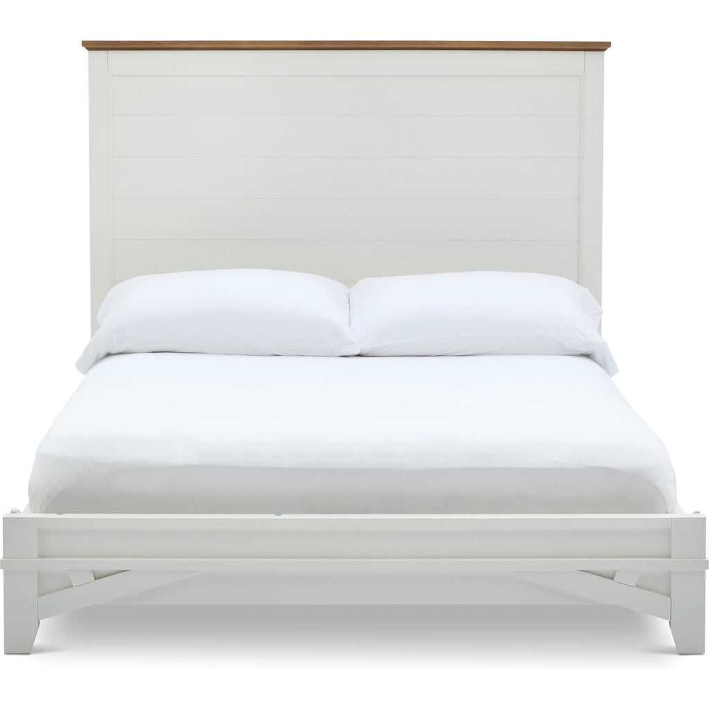 • Crafted from premium poplar solids in a linen finish topped with warm oak accents