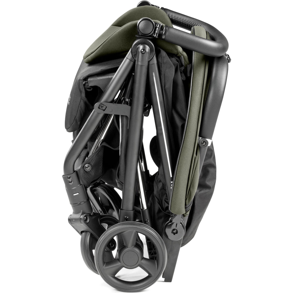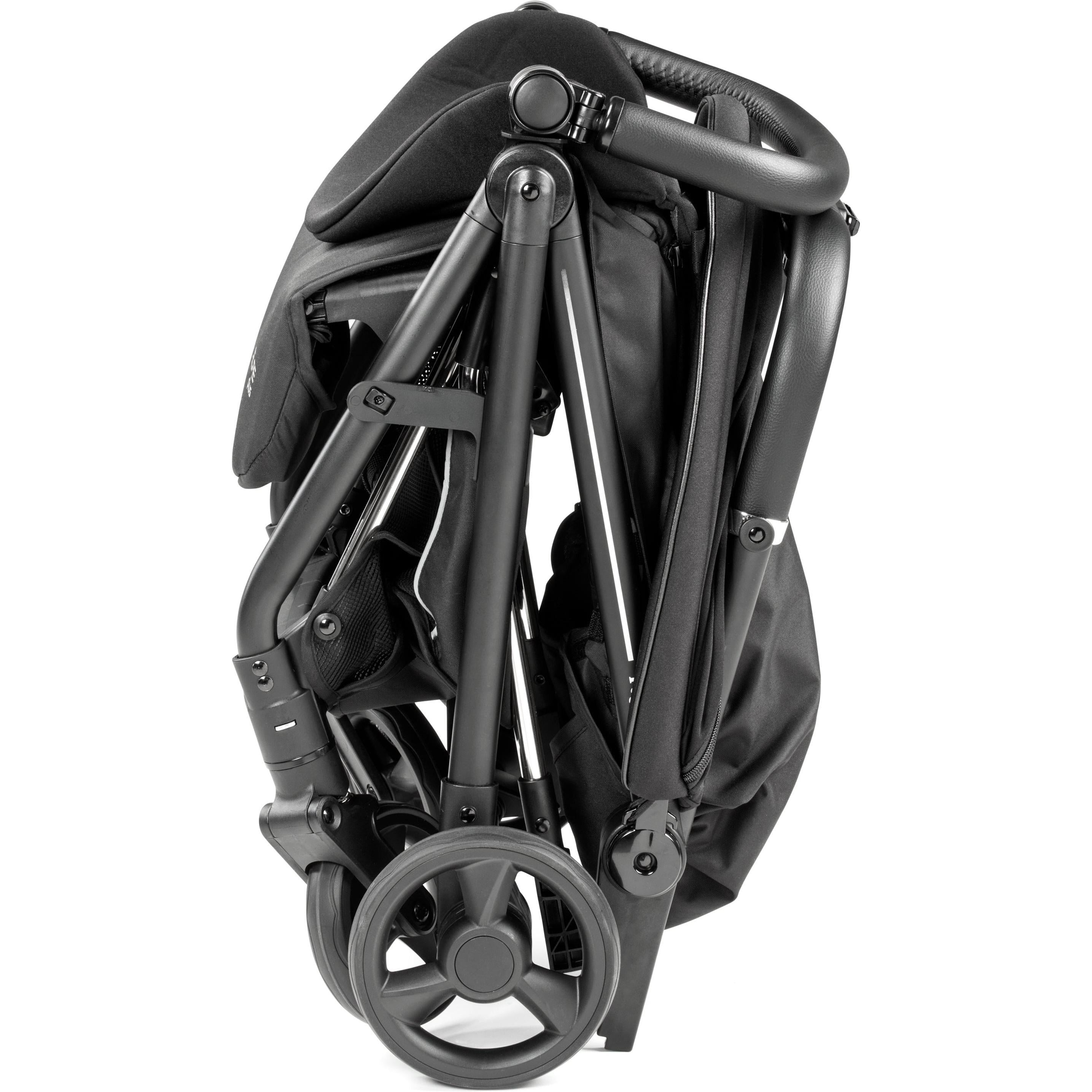 - Soft-ride wheels, rear shock absorbers with visible springs and ball bearings ensure agile steering on all terrain. User-friendly foot brake. The sleek eco-leather handles allows you to guide the stroller with one hand