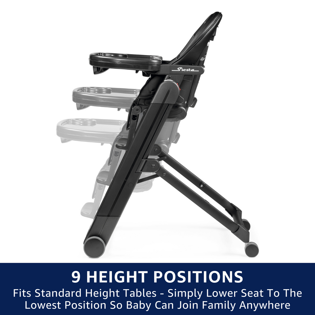 First a recliner, then a high chair: Siesta is there from the beginning. The multifunctional, ultra-compact high chair easily accommodates a child's growth. From birth, the Siesta can be used as a recliner or a high chair for feeding or playing. The removable tray and multiple height positions allow the child to sit right at the table.