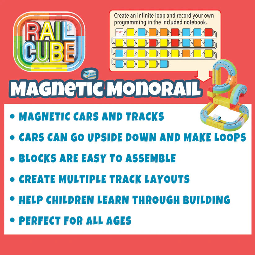 Rail Cube’s Magnetic Monorail Starter Set lets you build exciting trackways. The mini train glides effortlessly along the tracks for an engaging and dynamic play experience.