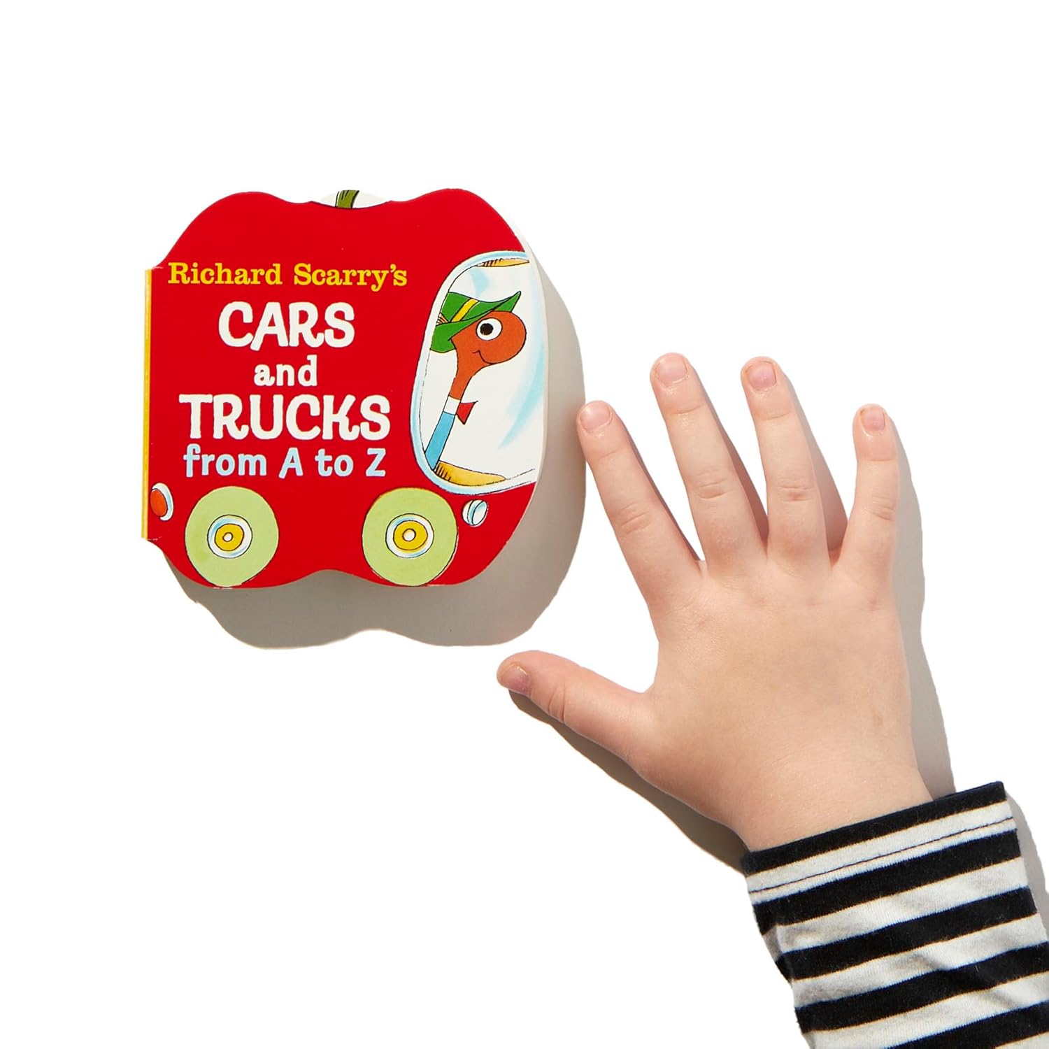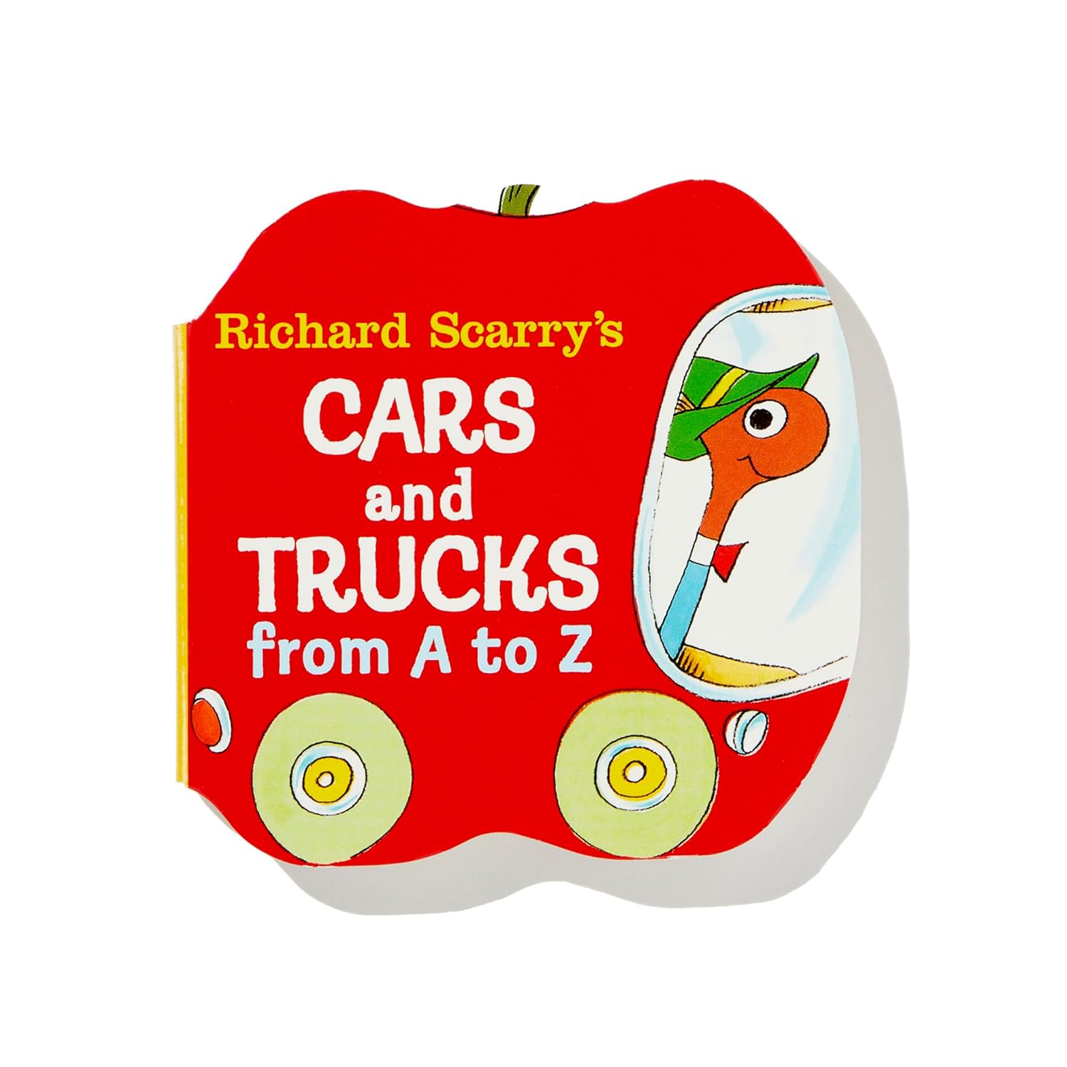 Join Lowly Worm and other Richard Scarry favorites in this mini board book all about the alphabet and corresponding vehicles! Discover the different automobiles that start with each letter in this creatively designed board book shaped like an apple for interactive and educational play. Featuring Richard Scarry’s signature illustrations, durable board pages, and over 30 unique cars and trucks, this travel-sized book is sure to be a favorite for the whole family!