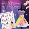 Aspiring fashion designers, bring your clothing creations to life! This comprehensive fashion designer set includes over 450 fabrics, a versatile sketchbook, easy-to-follow dress patterns and essential design tools to turn your vision into reality — all with no sewing required. Tailored for various skill levels, you can sketch your dream dresses, use the patterns to shape fabrics and display your masterpieces on mini mannequins, using the backdrop on the box to set the stage for a dazzling fashion show. Browse the guidebook to catch a glimpse into the fashion design profession; learn fundamental design skills like sketching ideas, adding details, layering fabrics and basic sewing skills and discover cool fashion design tricks like making a mood board, measuring in heads and more.