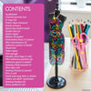 - Over 450 fabrics, sketch book, 10 dress patterns, seam ripper, 2 o-rings, 1 sheet of adhesive gems, 2 set of pins with colorful knobs, 12 colored pencils, 2 sewing chalk pencils, 3 spools of sewing thread, 7 colors of embroidery floss, 6 sewing needles, 9 mini adhesive patches, pearl trim, 1 sheet of hook and loop dots, hem gauge, fabric tape measure, 10 mini clips, small pair of scissors, fabric glue, 1 sheet of adhesive pearls, 1 roll of double-stick tape, 8 styles of ribbon, 3 scaler tools, 3 mini mannequins, 23 18” x 8”swatches of fabric and step-by-step instructions.