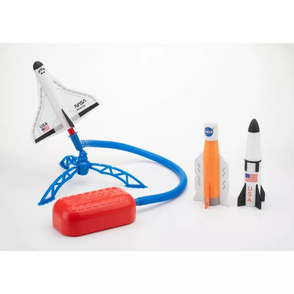 3…2…1… LIFTOFF! Introducing the all new Space Collection by Stomp Rocket! Run, Jump, Stomp and Blast off into Space for hours of active play. Ignite your cosmic curiosity and stomp to launch 3 iconic NASA spacecraft in the air. Includes 1 SLS Rocket, 1 Space Shuttle Atlantis, 1 Saturn V Rocket, and an adjustable launch stand.