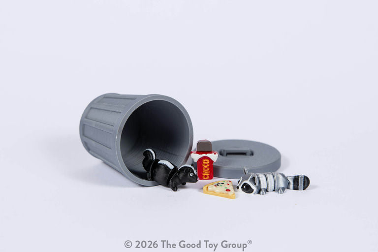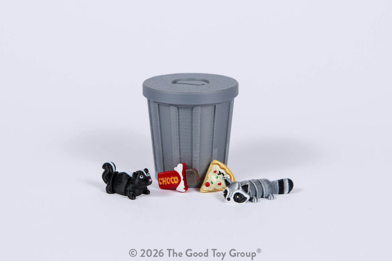 Surprise kiddos with trash cans that have collectible, tradeable 3D printed fidget friends and accessories inside. Kids love surprises, and they love animals that get a little gross...like raccoons, opossums, and skunks! In each of these Trash-mals blind boxes, they'll know one fidget friend inside, but the second is a surprise. Each set also comes with two fun accessories and a trash can for storytelling play. Animals are 3D printed fidgets! Collect and trade all 4 fun styles, each sold separately in blind boxes.