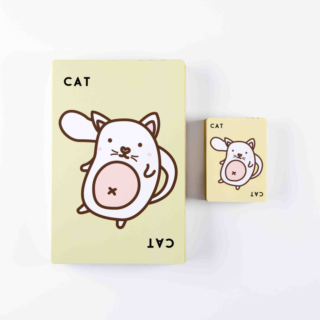 - Players big and small start by grabbing the RIDICULOUSLY LARGE cards and saying- "Taco", "Cat", "Goat", "Cheese", "Pizza".