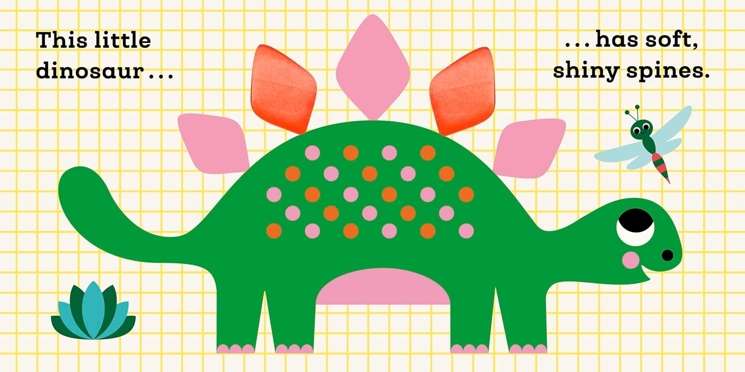 Meet five adorable little dinosaurs and explore a different texture on every page in this touch-and-feel board book, with a soft felt flap finale! In This Little Dinosaur, you will be meet a dinosaur with soft shiny spines, a dinosaur with big teeth, a dinosaur with shimmery bumpy spots, and more . . .