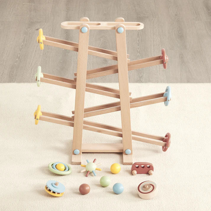 The Tumble Track is an innovative toy designed to bring endless hours of fun and excitement to children. With its colorful ramps and engaging design, it captivates the imagination and provides a unique sensory experience. Watch as widgets, cars, balls, and spindly roly-polys race down the ramps, each creating a unique and thrilling experience. This toy is designed to engage your child's senses, promoting development through visual stimulation and hands-on interaction. The Tumble Track encourages children to create their own stories and scenarios, enhancing their creativity and imaginative skills.