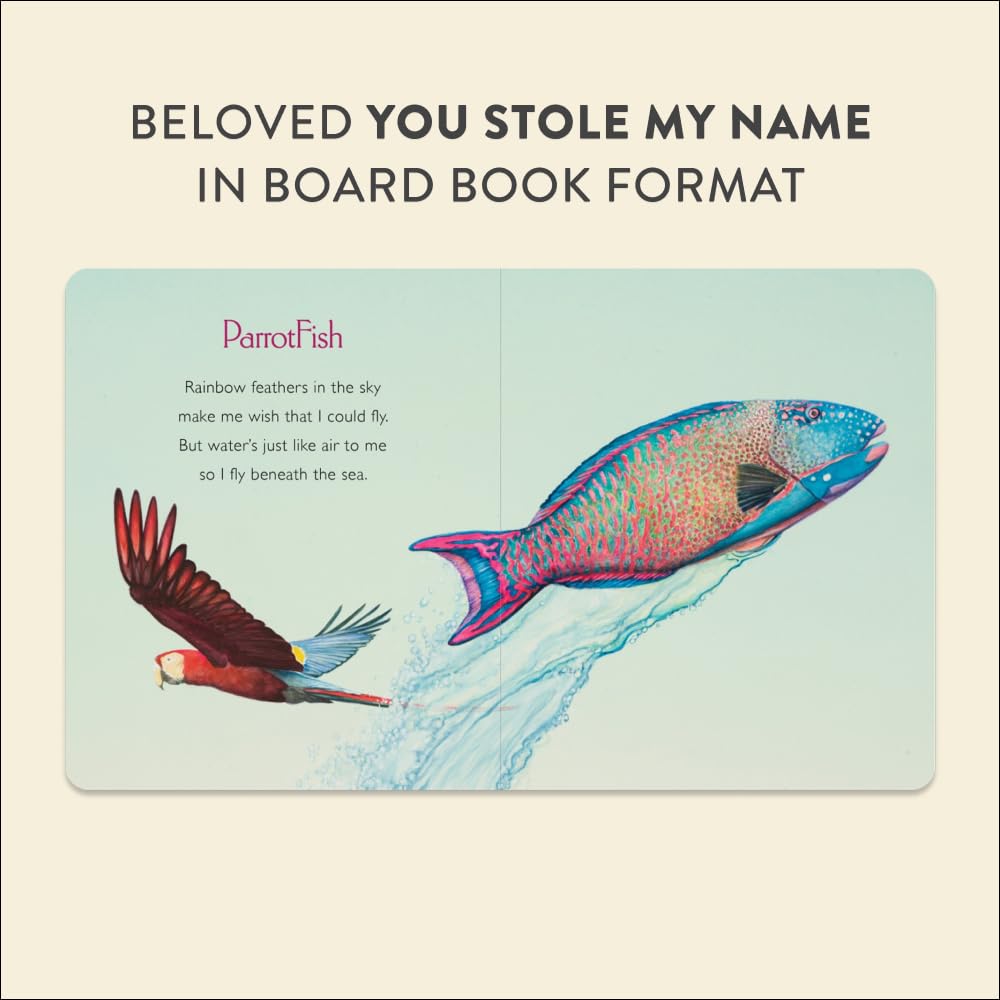 Now in a durable board book format, You Stole My Name is a beautiful and timeless "children's coffee-table art book." It is the perfect picture book for children ages 0–3, making it a great birthday gift or Christmas gift.