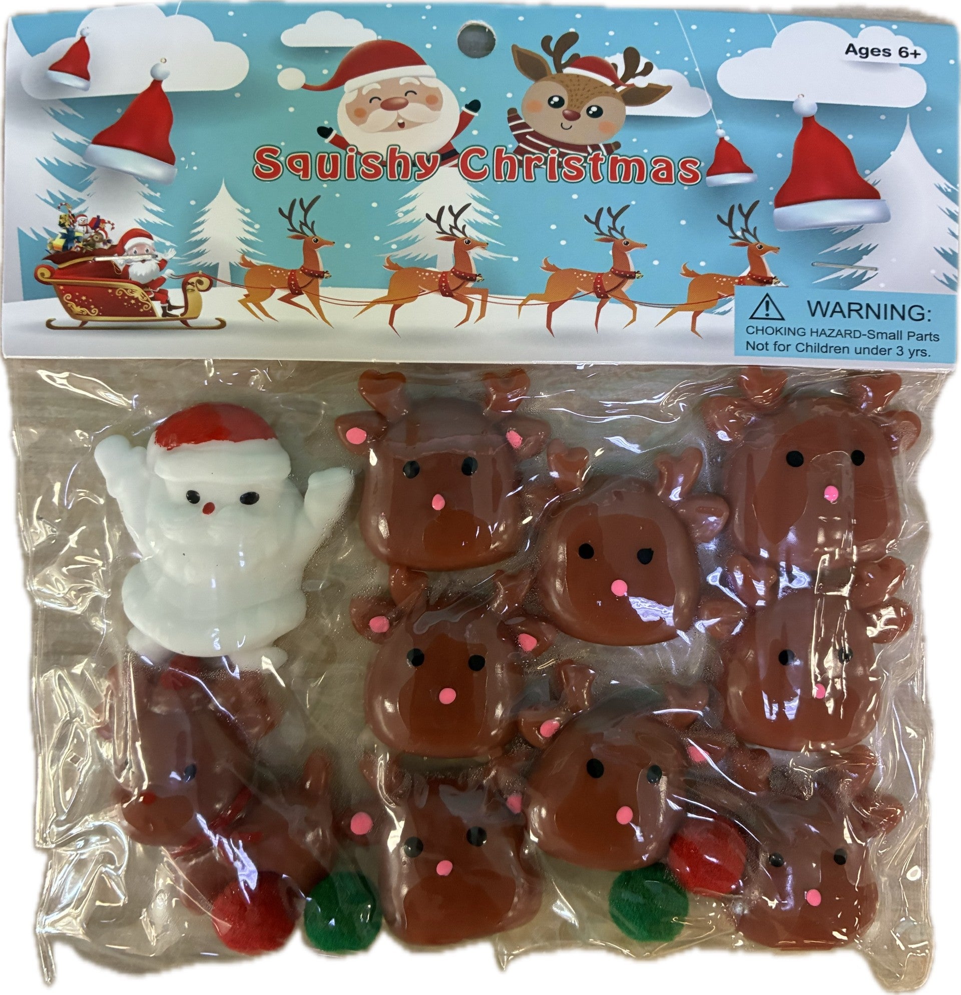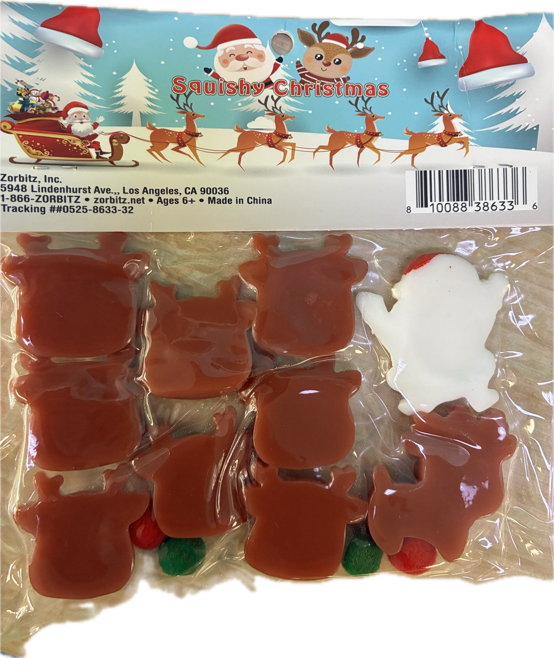 Release stress with these holiday themed taba-style squishies. Squeeze Santa and his 9 adorable reindeer to get into the Christmas spirit and to melt your stress away!