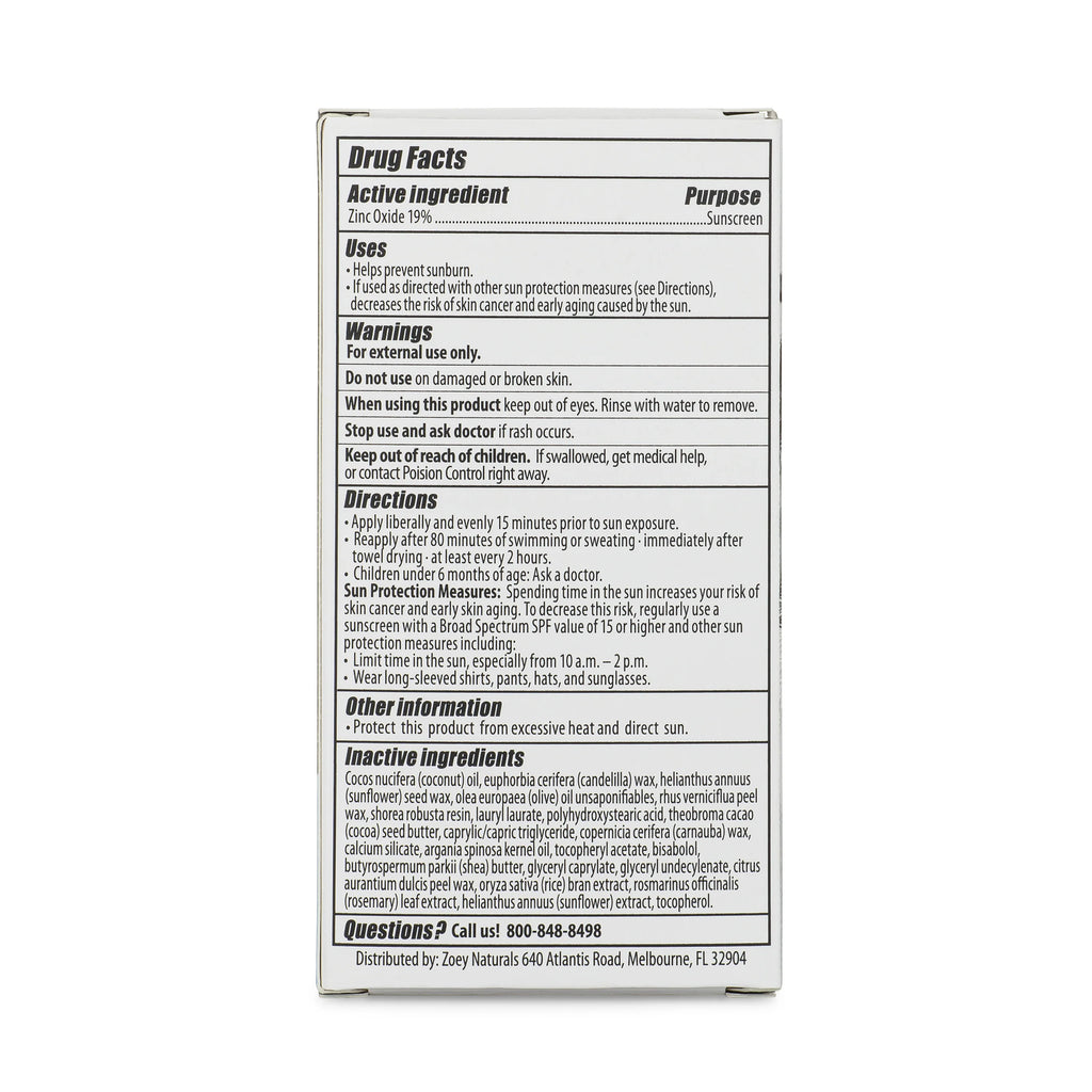 Ingredients: Zinc oxide, cocos nucifera (coconut) oil, euphorbia cerifera (candelilla) wax, helianthus annuus (sunflower) seed wax, olea europaea (olive) oil unsaponifiables, rhus verniciflua peel wax, shorea robusta resin, lauryl laurate, polyhydroxystearic acid, theobroma cacao (cocoa) seed butter, caprylic/capric triglyceride, copernicia cerifera (carnauba) wax, calcium silicate, argania spinosa kernel oil, tocopheryl acetate, bisabolol, butyrospermum parkii (shea) butter, glyceryl caprylate, glyceryl undecylenate, citrus aurantium dulcis peel wax, oryza sativa (rice) bran extract, rosmarinus officinalis (rosemary) leaf extract, helianthus annuus (sunflower) extract, tocopherol.